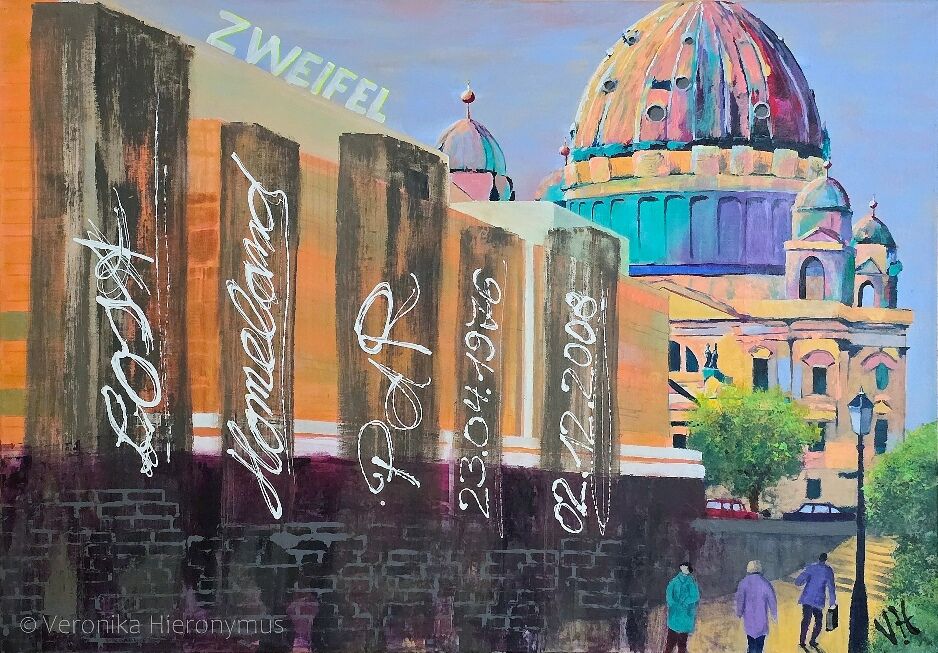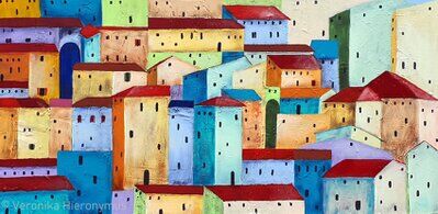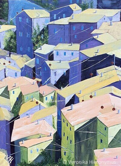 Ich arbeite in Aquarell, Acryl, Mixed Media und Collagetechnik und nutze die Motive als Grundlage für Farbe, Form und Raum.