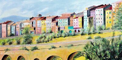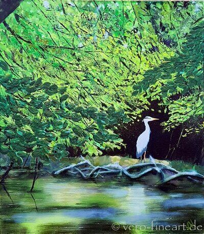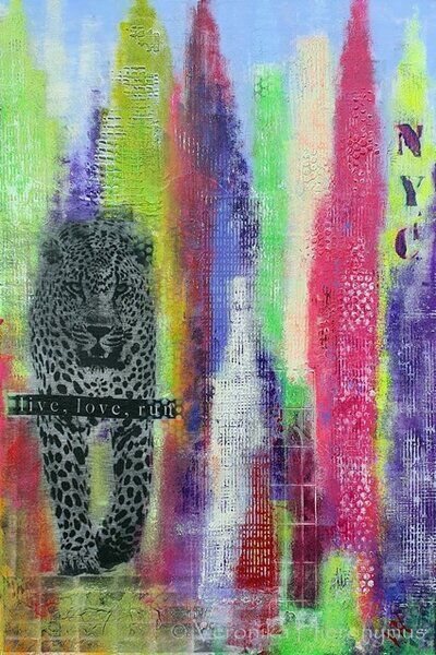 Ich arbeite in Aquarell, Acryl, Mixed Media und Collagetechnik und nutze die Motive als Grundlage für Farbe, Form und Raum.